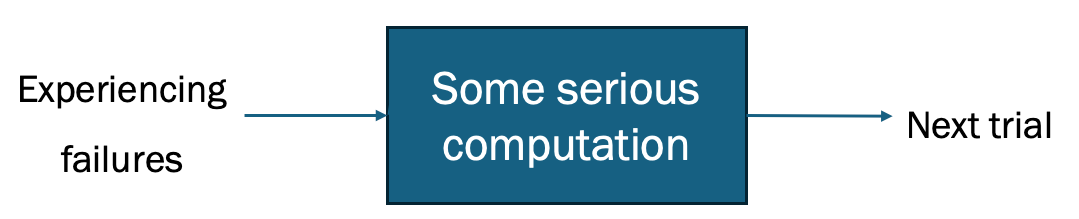 Exploiting the structure underlying failures. Of course, this approach is infeasible because the space of failures is combinatorial, and we want to minimize NREs. But crucially, in most intelligent tasks we care about, failures are not arbitrary: they have patterns that distinguish them from successes (otherwise, intelligence does not matter). If we can learn these patterns, we can approximate $R$ using a small number of samples. This parallels how human scientists reason: they generalize from failures, avoiding past mistakes without discarding promising directions. To minimize NREs, the algorithm must extract as much information as possible from failures before making new attempts.